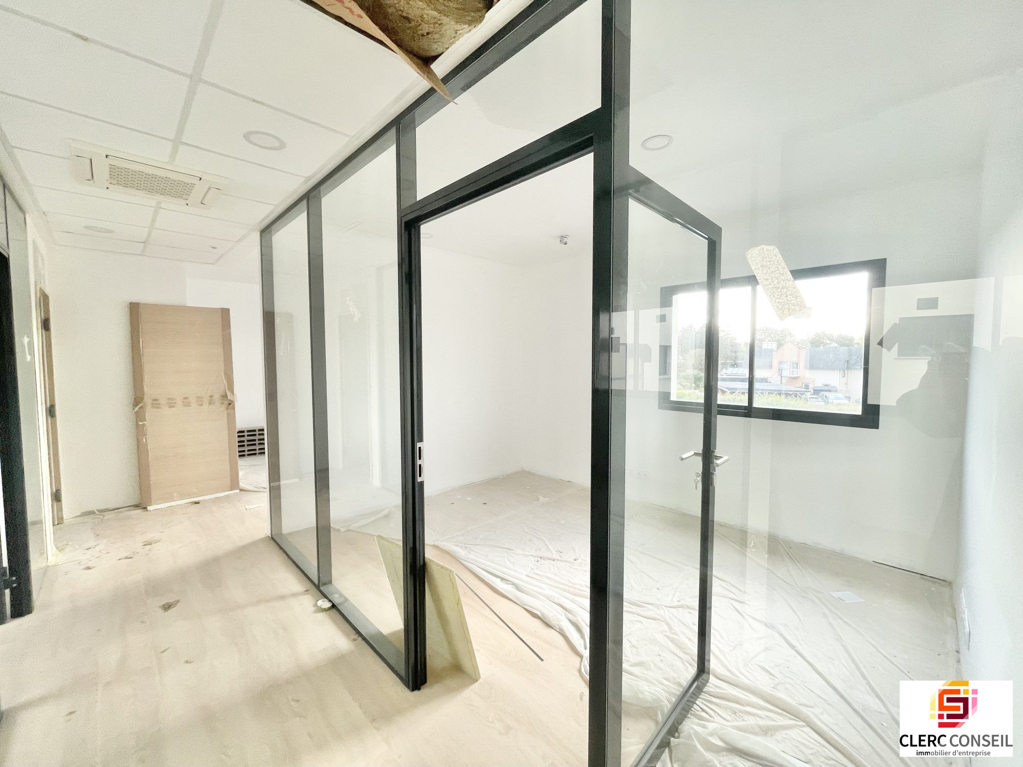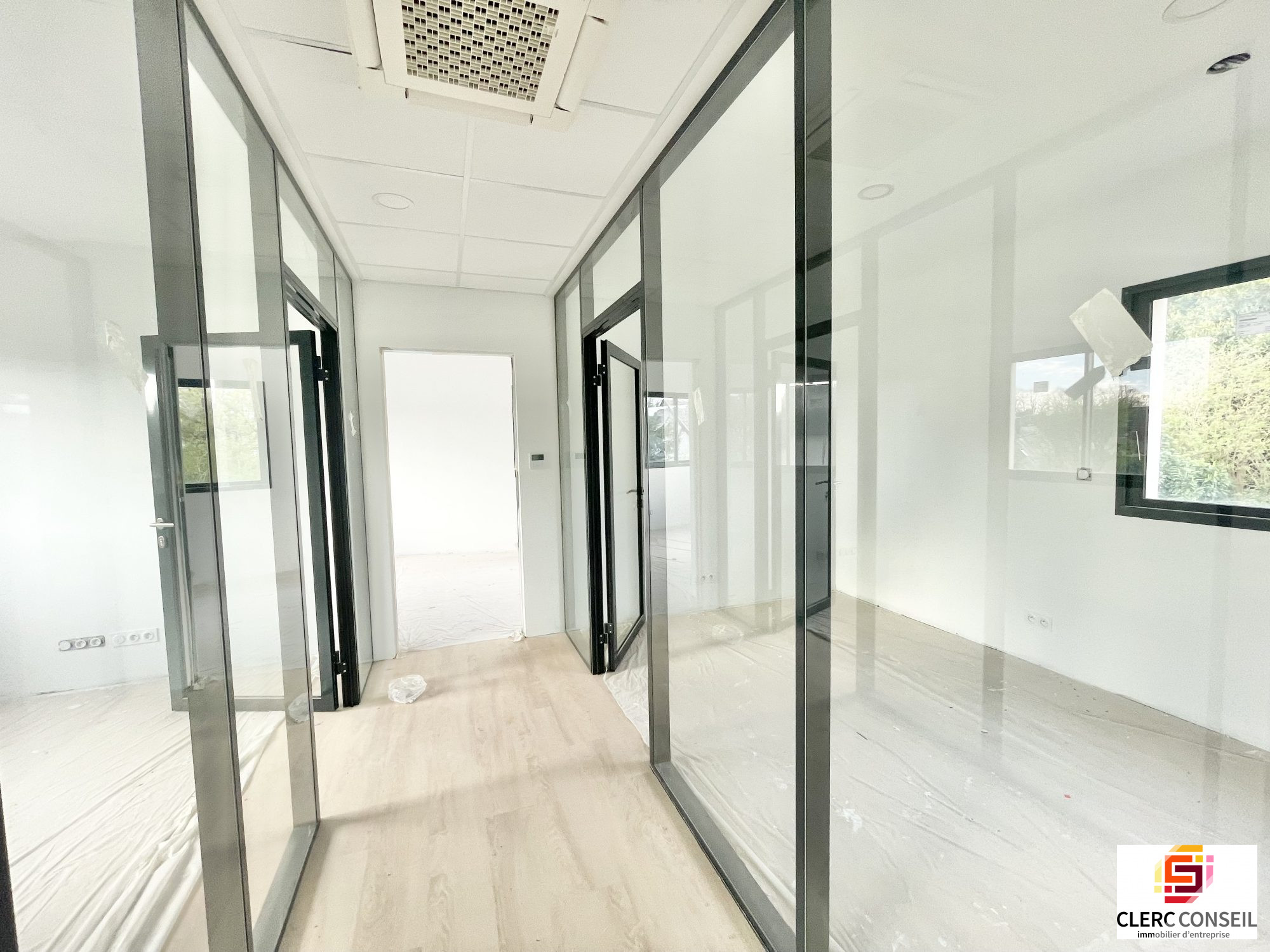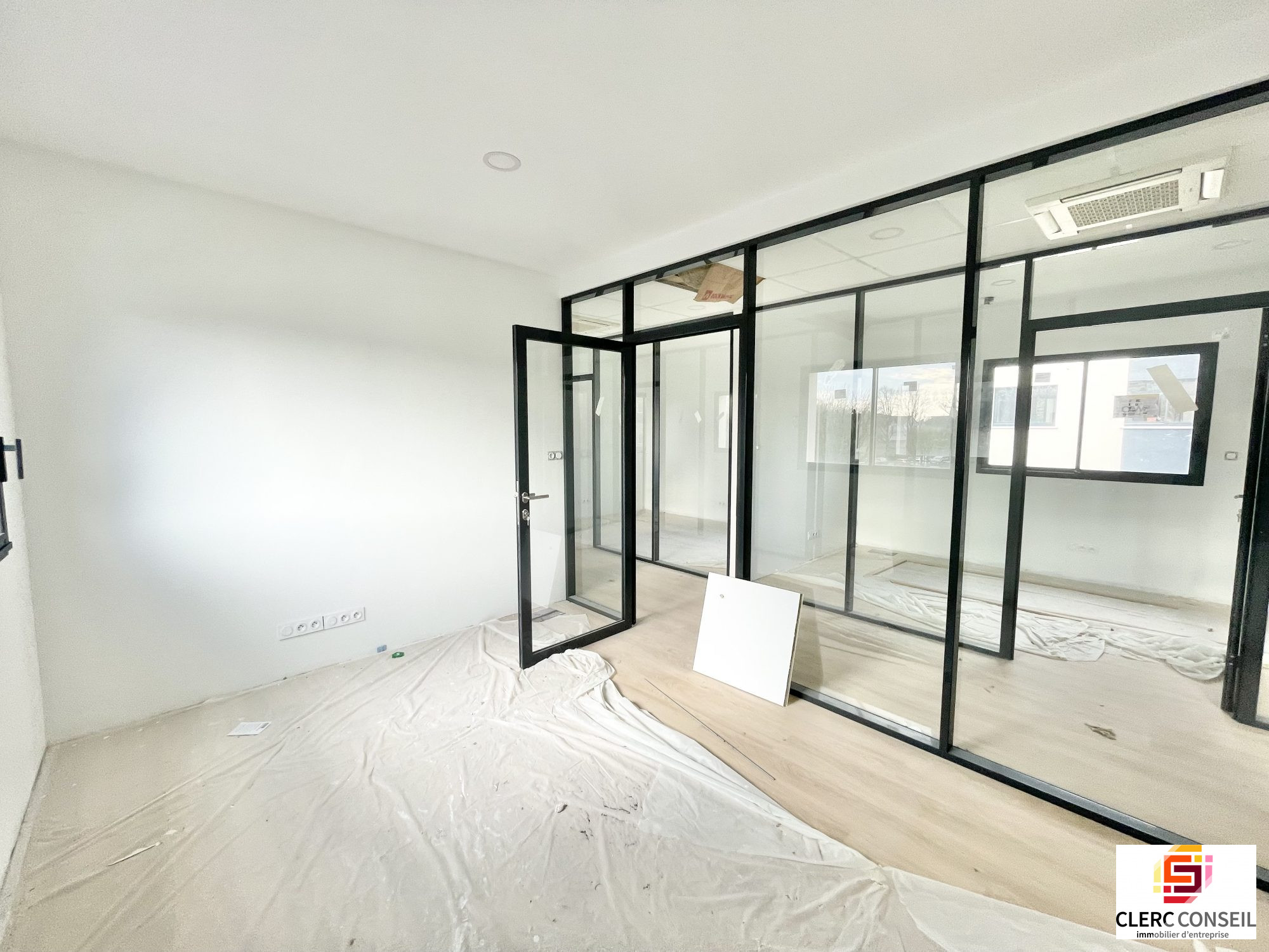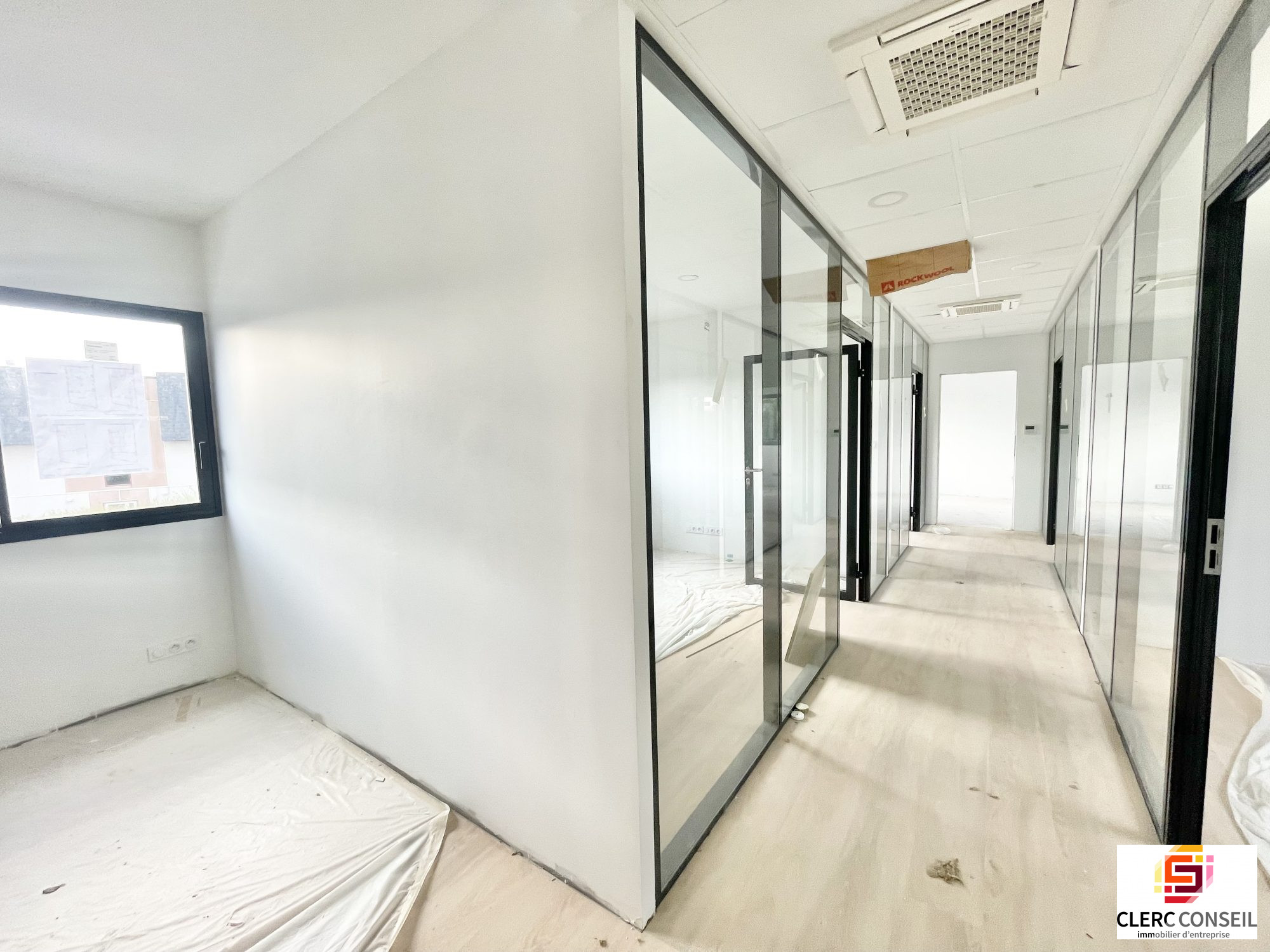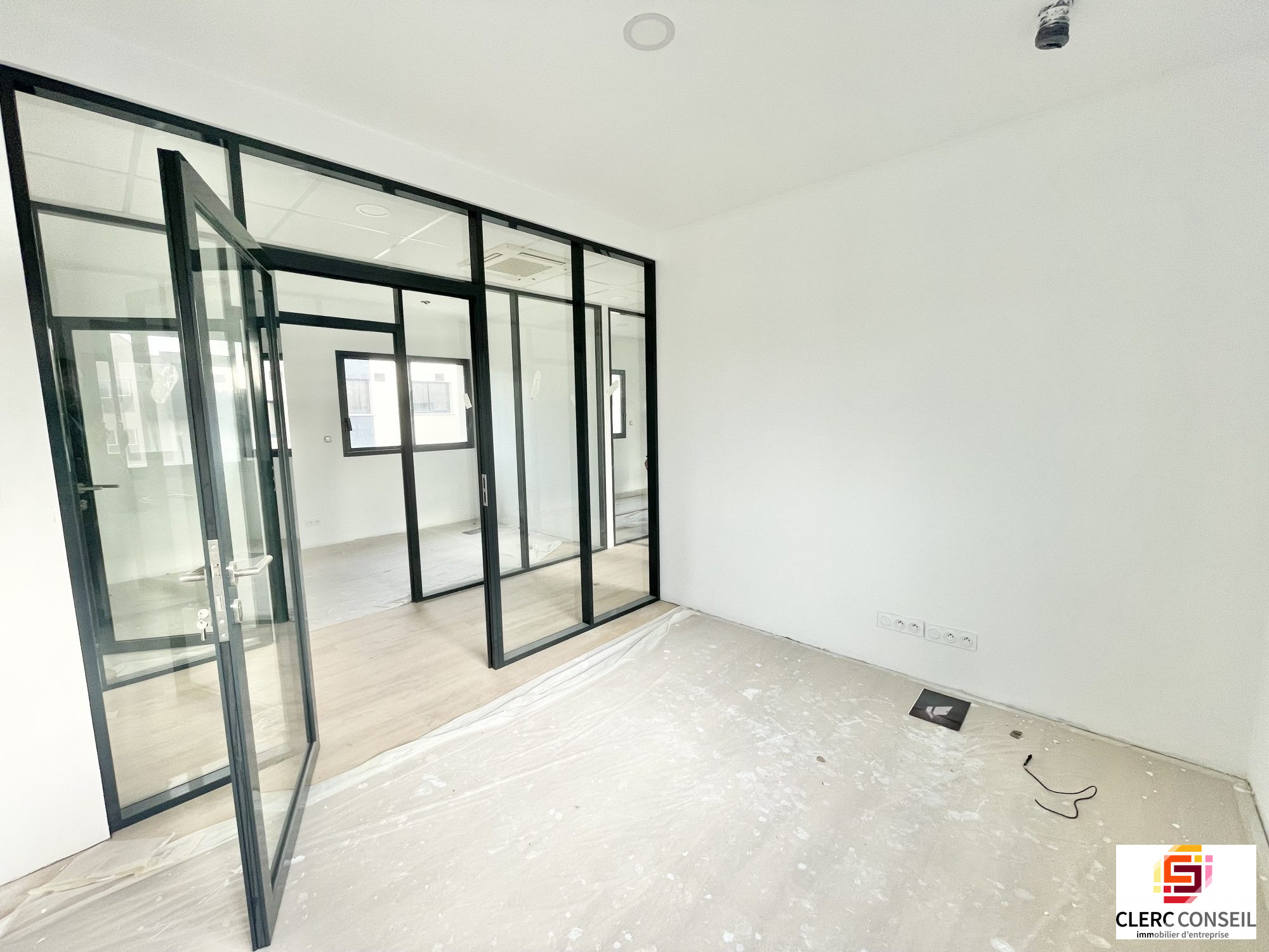 A Bois-Guillaume, au coeur d'une zone d'activité, au 1er étage d'un immeuble neuf récemment livré, un plateau de bureaux d'environ 100 m2 comprenant : 1 accueil, 5 bureaux cloisonnés vitrées et 1 sanitaire privatif.