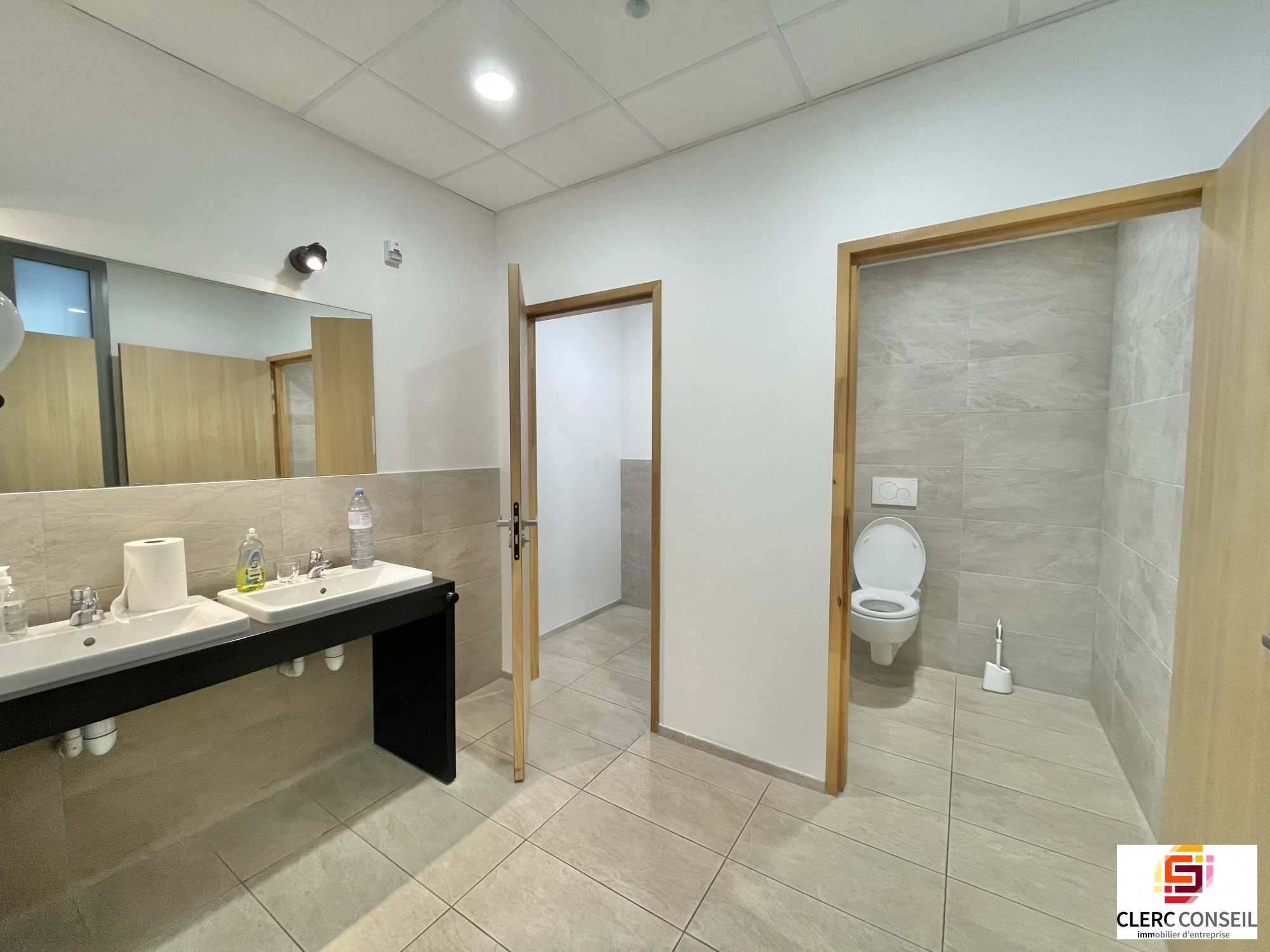 En plein coeur de la zone d'activité, surface de bureaux de 282 m2 environ (quote-part de parties communes incluse), située au 1er étage de l'immeuble, composée d'un open-space et deux sanitaires privatifs.