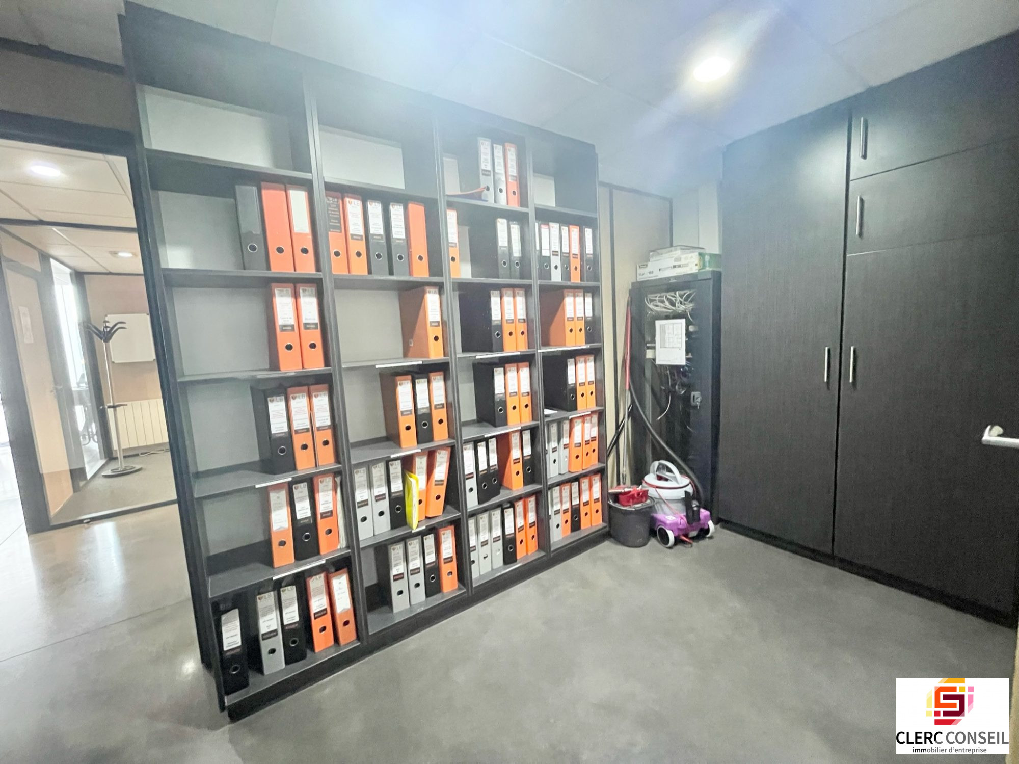 Au sein d'un immeuble tertiaire, une surface de bureaux de 125 m2 environ située au RDC et composée d'un espace accueil, deux salles de réunion, 3 bureaux cloisonnés, une cuisine, une douche et des sanitaires.