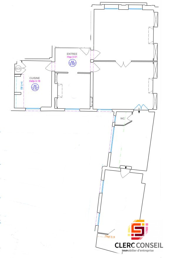 Au sein d'un immeuble de caractère, situé au 1er étage, un appartement d'habitation (changement de destination à prévoir) d'une superficie de 99,46 m2, composé d'un accueil, une cuisine, 4 pièces et une salle de bain