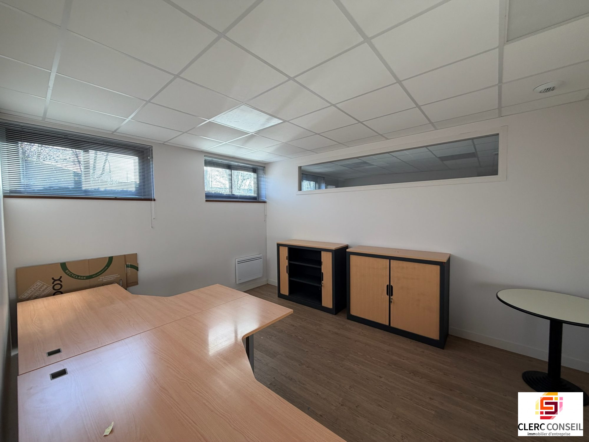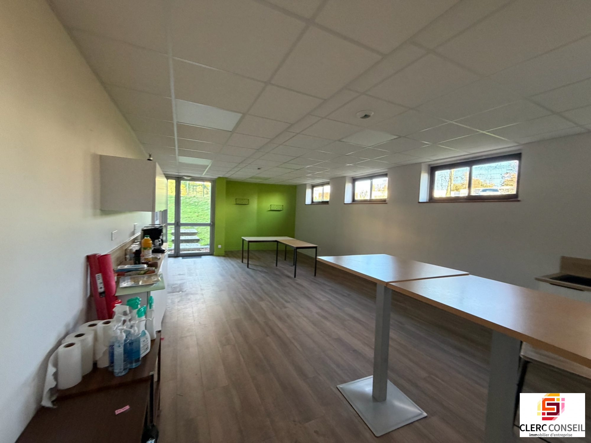- Au rez de jardin, des bureaux cloisonnés, une grande salle, une cuisine et des sanitaires