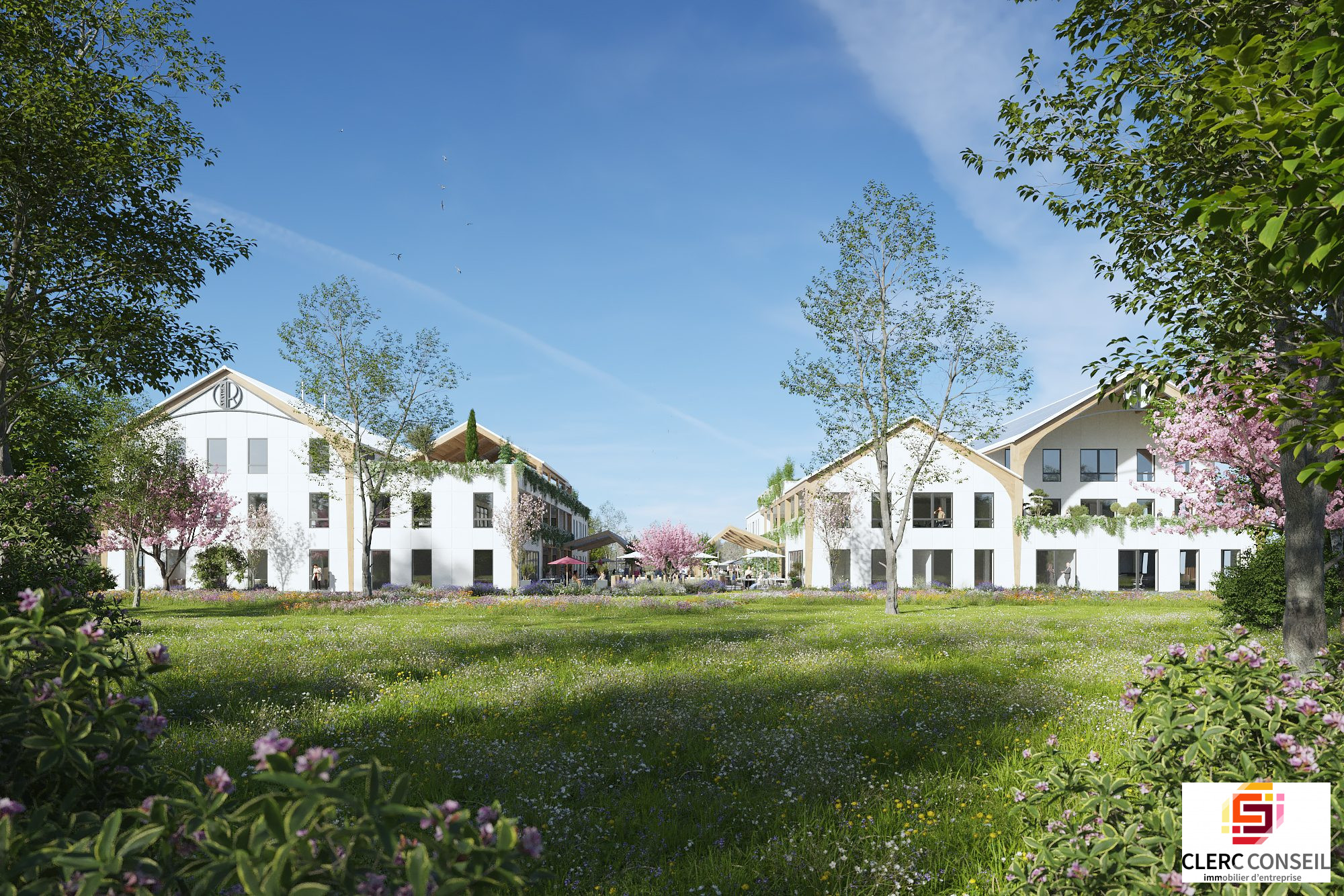 Au sein d'un ensemble immobilier tertiaire à construire en plein coeur de la zone d'activité, une surface de bureaux située au R+1 de 225,47 m2 environ avec terrasse privative de 59,50 m2.