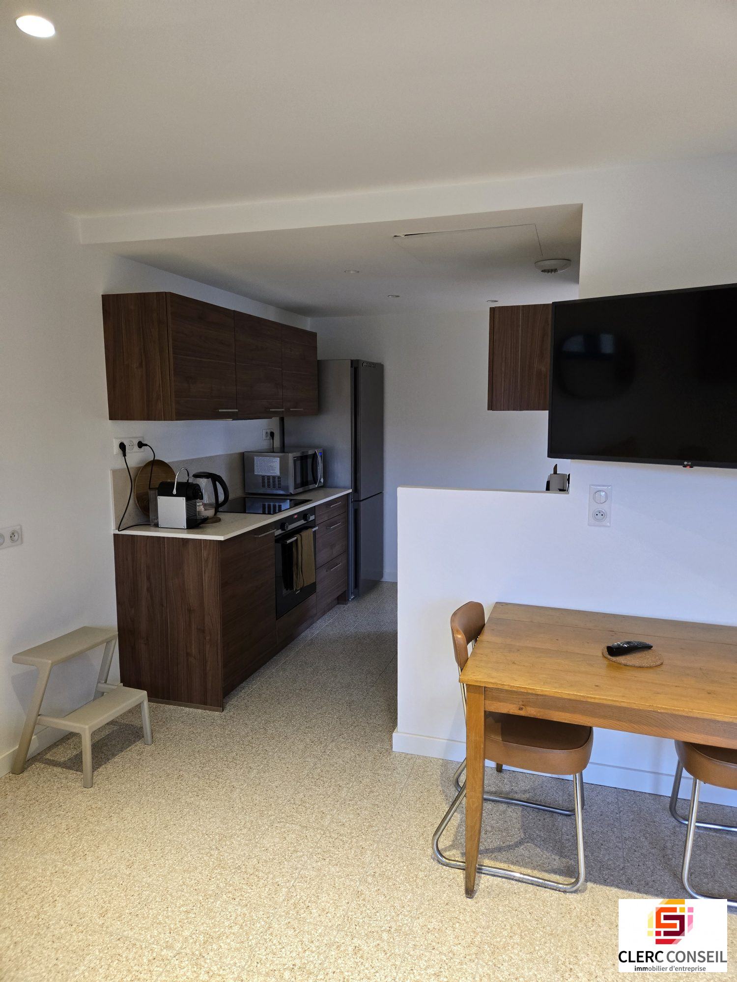 - Au R+1 : une surface de 370 m2 environ composée d'une grande salle de réunion louée à la journée avec kitchenette et plusieurs appartements meublés avec cuisine, douches et sanitaires en location courtes durée.