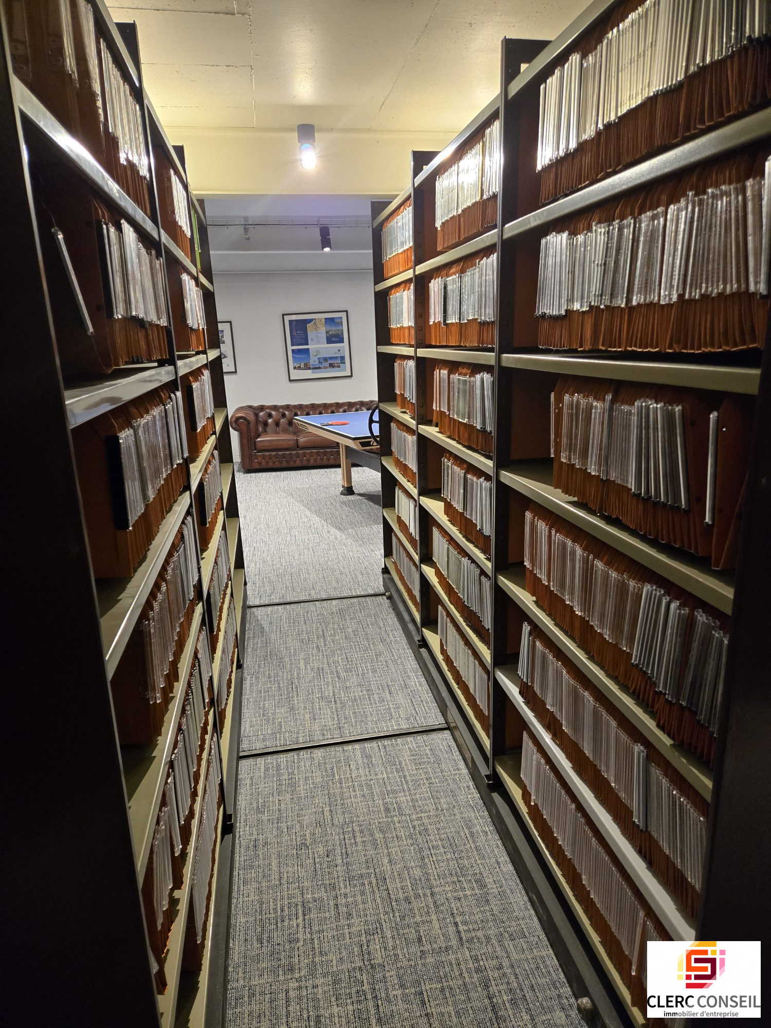 - Au rez-de-jardin : une surface de 195 m2 comprenant une cuisine avec son réfectoire, une salle de sport et un espace détente avec grand espace archives avec racks de rangement